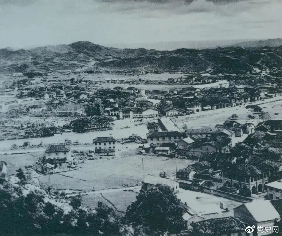 1928年4月,朱德率領(lǐng)南昌起義余部到達(dá)井岡山,與毛澤東領(lǐng)導(dǎo)的部隊勝利會師。圖為會師地點礱市全景。