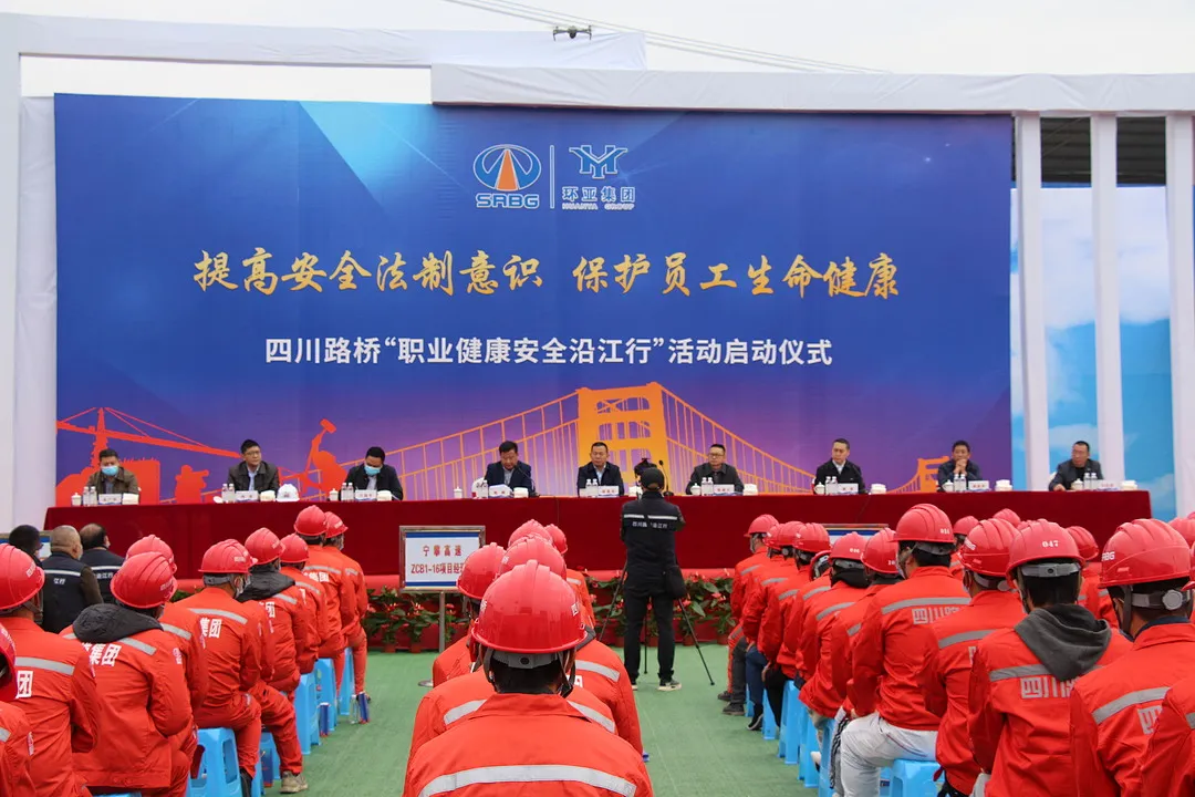 為進一步落實新修改《安全生產(chǎn)法》和《工作場所職業(yè)衛(wèi)生管理規(guī)定》(國家衛(wèi)生健康委令第5號)等國家法律法規(guī),提升安全生產(chǎn)整體水平,提高安全文明素養(yǎng),有效保障工人的健康,12月2日上午10點,2021年“職業(yè)健康安全沿江行”啟動儀式在沿江高速寧攀段ZCB1-17/18項目大面山隧道施工現(xiàn)場順利舉行。攀枝花市交通運輸局總工程師陳盛火,四川路橋安保部經(jīng)理陳昌吉,沿江攀寧公司黨委副書記、紀委書記、工會主席柯俊,公路二分公司黨委委員、安全總監(jiān)廖勇,環(huán)亞集團董事長陳鵬等出席本次活動。沿江高速攀枝花段各項目、四川環(huán)亞康宏安全技術咨詢有限公司參加。