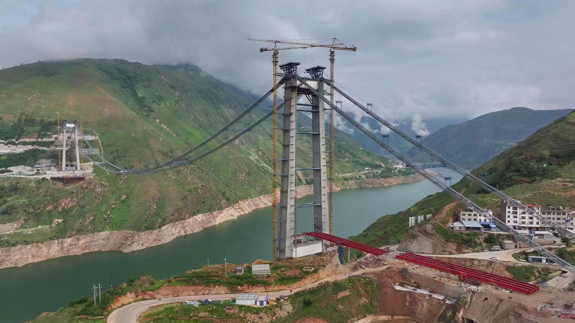 川滇金沙江特大橋為主跨1060米單跨雙塔鋼桁梁懸索橋。主纜作為大橋的重要受力構(gòu)件,是橋梁上部結(jié)構(gòu)施工控制的關(guān)鍵環(huán)節(jié),被譽為懸索橋“脊梁”。該大橋共設(shè)兩根主纜,每根由127根索股構(gòu)成,單根索股長約1581米,重約32噸,全橋主纜重約8128噸。