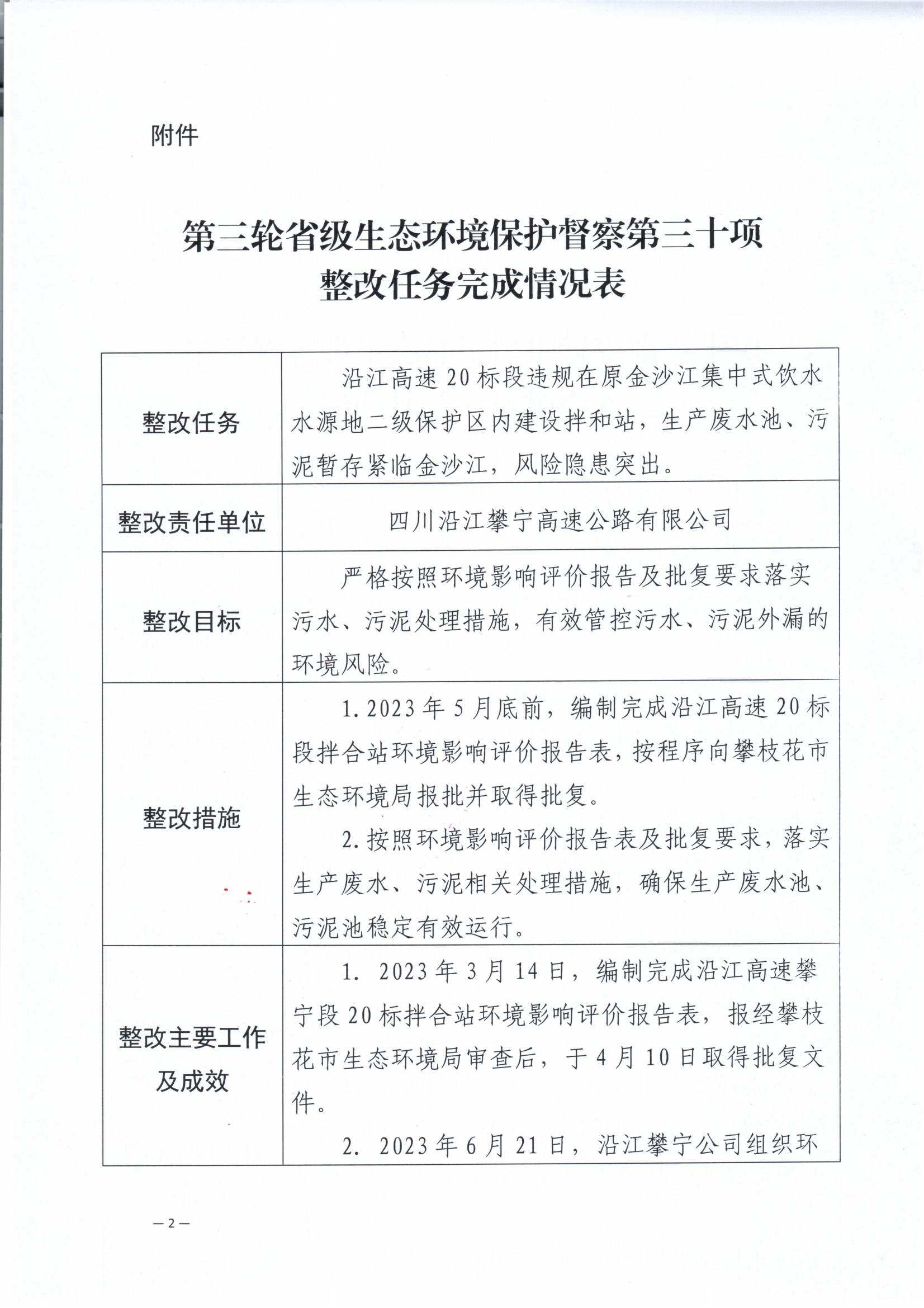 四川沿江攀寧高速公路有限公司 關(guān)于省環(huán)保督察第三輪第三十項(xiàng)整改任務(wù)銷號(hào)公示